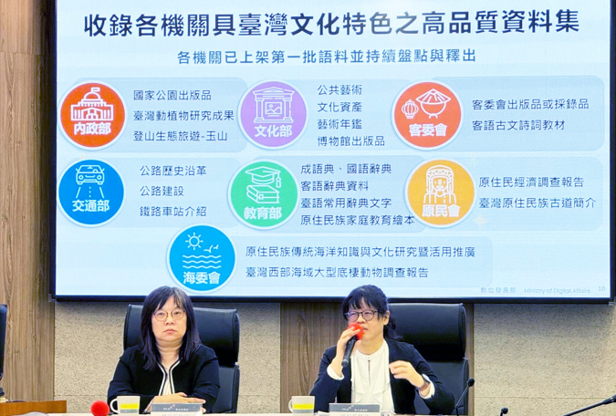 文化部與教育部亦參與語料提供。文化部表示,上架的公共藝術及文化資產相關資料集,展現臺灣多元且豐富的藝文樣貌,可作為AI學習臺灣文化內容的重要基礎;教育部則指出,其提供的語言辭典資料涵蓋臺語、客語與國語等,有助於強化AI模型在用詞精準度與語意理解上的表現。