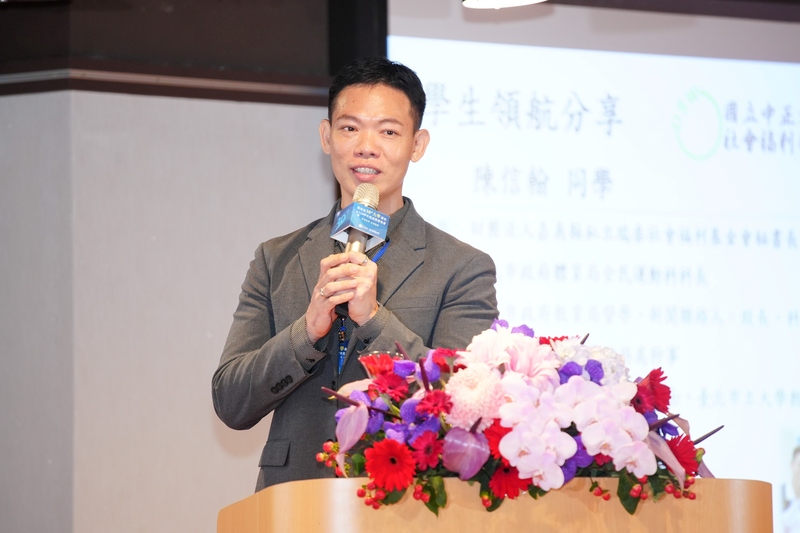 此外,國立中正大學114學年度第三人生大學學生陳信翰同學亦分享其以學習精進專業、回應家庭與社會需求的實踐經驗,陳同學已具博士學位,現任嘉義縣私立瑞泰社會福利基金會秘書長,為承接家族長照事業而持續進修,期盼把所學轉化為服務創新動能,為長照領域注入新活力,體現「學習不受年齡與身分限制」的精神。