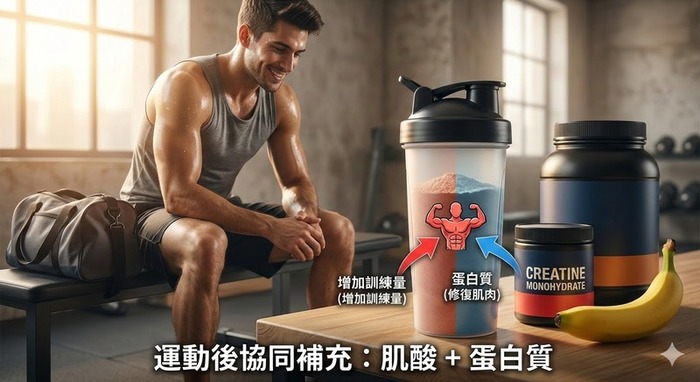 在實務上,許多健身者會同時使用多種運動補充品。其中最常見的組合是蛋白質與肌酸。蛋白質提供肌肉修復所需胺基酸,而肌酸則幫助升訓練量與力量輸出,因此不少教練會建議在運動後同時補充蛋白質與3至5克肌酸。部分研究也指出,搭配碳水化合物可能增加肌酸吸收率,而咖啡因則常被用於運動前提升專注與運動表現。