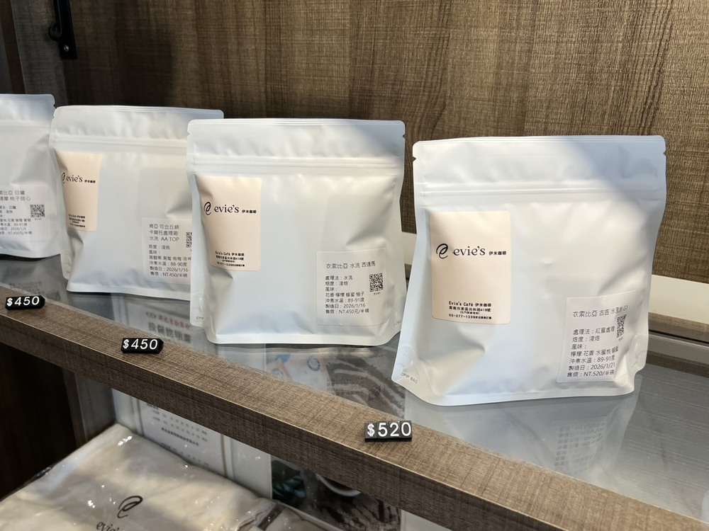 伊米咖啡主打的核心,是 自家烘豆與專業沖煮技術。店內販售多款世界產區的精品生豆烘焙,包括衣索比亞、瓜地馬拉、哥斯大黎加等豆種,並提供掛耳包與濾泡包等方便商品,讓現場體驗延伸至居家享受。
