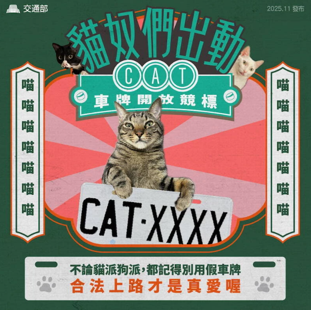 臺灣車牌競標市場近日再度掀起熱潮,被視為「貓奴夢幻神牌」的 CAT 系列車牌於 12 日正式落槌。其中焦點中的焦點——「CAT-8888」以 57 萬 6000 元高價決標,不僅成功擠進「臺灣最貴車牌前十名」榜單,更刷新基隆監理站同號車牌歷史新高。短短競標期間內,CAT-8888 共吸引高達 130 次出價,熱度之高可說是近年少見,也讓該車牌成為今年最具話題的標售王。