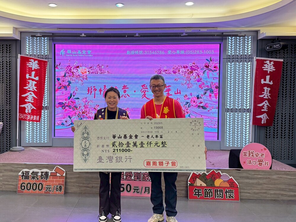 國際獅子會300E-1區嘉鳳獅子會長期認同華山基金會服務,一同守護嘉義弱勢長輩,愛心13年協助不間斷。在充滿愛意的西洋情人節前夕,嘉鳳獅子會於今日上午在船老大囍宴餐廳,攜手舉辦「獅情話意‧愛在華山」公益捐贈記者會,現場邀請16位華山服務的爺奶參與,將情人節的浪漫化為實際行動,陪伴在地孤老,讓愛不再只是戀人專屬,更普及到每一位需要被關懷的人。