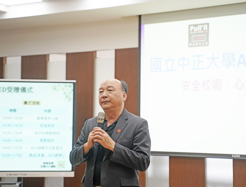 代表受贈的中正大學校長蔡少正對林總裁的善舉表達誠摯謝意。蔡校長指出,校園場域廣闊且人員密集,縮短緊急狀況發生時的取用距離,是提升存活率的關鍵。本次受贈的4台AED已佈署於碩博士班宿舍、文學院、共教大樓及創新大樓等關鍵據點,顯著提升了急救設備的獲取效率。