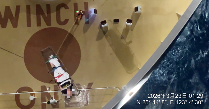 今日凌晨0059時抵達現場後,機組人員先進行高低空偵察,評估風向、風速、海況及船上環境安全,隨後精準完成吊掛作業,將病患以擔架安全吊掛進艙,並以吊環將陪同家屬一併吊掛上機,於機上持續監測生命徵象。0237時安全降落松山機場,隨即由地面救護人員接手轉送至馬偕醫院接受進一步急救與治療。