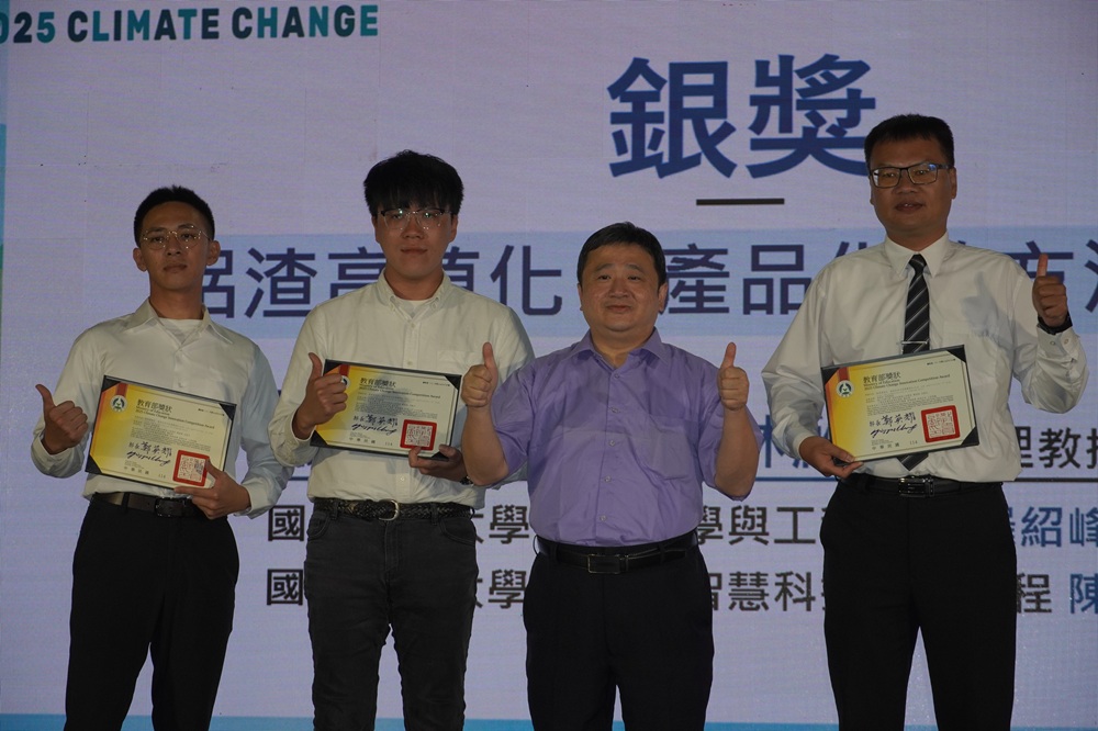 大專校院組「氣候變遷創意實作競賽」金獎由國立臺灣大學及宜蘭大學團隊奪得,他們利用3D列印碳材技術,成功捕捉二氧化碳以供再利用或封存。銀獎則由國立臺灣大學與清華大學團隊的「GreenBike:騎出永續未來」作品,以及國立中興大學團隊的「鋁渣高值化、產品化方法」作品獲得,兩組作品皆以創新方式解決環境永續及資源回收問題。