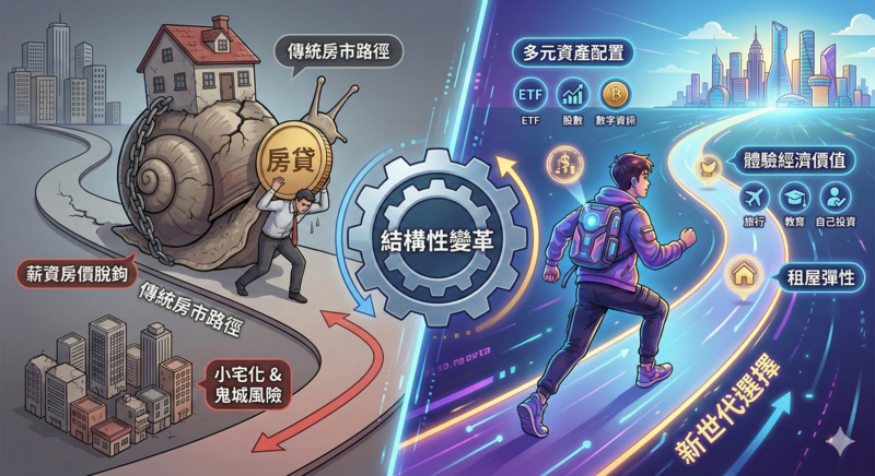 進入2026年的今日,走進台灣各大都會區,我們看到的不再是「有土斯有財」的舊時代景象,而是一場正在悄然改寫的財經賽局。對於現代年輕世代而言,買房這件事,已從過去的「人生必修學分」,逐漸轉變為一項高風險、高槓桿的投資選擇,甚至是「理性排斥」的經濟決策。這場由買方市場轉向的結構性變革,不僅反映了青年對資產配置的重新定義,更對整體房地產市場產生了深遠的衝擊。