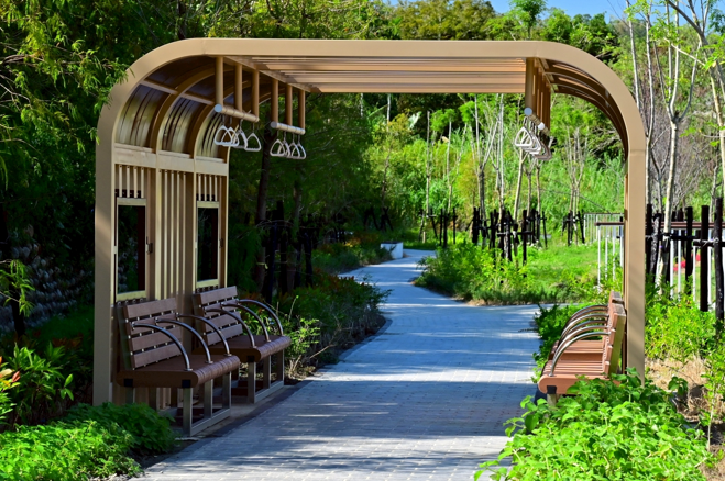 公廁改造採簡約通透設計,融入自然景觀,並強化明亮、友善及無障礙空間動線,內部設備全面更新,提高使用舒適度。舊泰安車站周邊則透過複層式植栽、無障礙步道重新串連水岸景觀,並結合鐵道特色打造延伸且開闊的景觀步道。此外,園區新設大面積陽光草皮,提供休憩、野餐及賞景等多功能場域,成為四季皆宜的旅遊新亮點。
