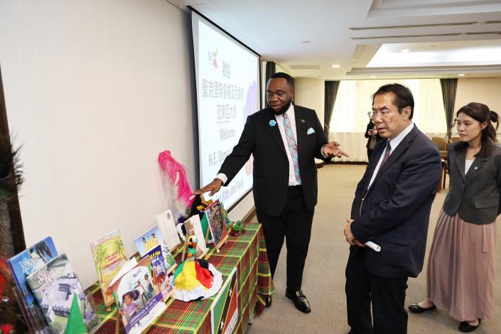 此次捐贈書籍共計10冊,內容涵蓋文化、生活、節慶與價值觀等主題,其中亦包含范東亞大使個人創作。透過童書、歷史與文化敘事等多元形式,有助讀者認識加勒比地區特色。作為回禮,臺南市亦贈送兩本介紹在地文化的英文書籍,促進雙向文化交流。