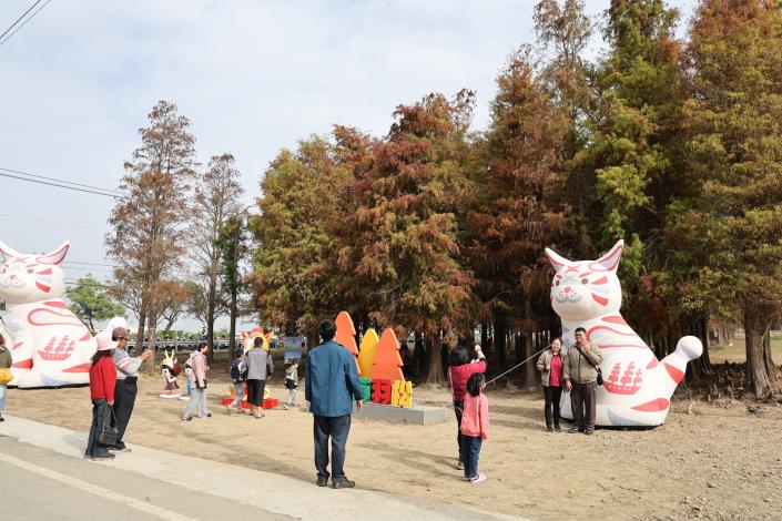 六甲區長陳啓榮表示,今年適逢馬年,區公所在延續往年落羽松季風采的基礎上,於園區周邊規劃多項裝置藝術,包括六甲特色公仔與花海景觀,超人氣巨型貓咪公仔「巷仔Niau」,以及法務部矯正署臺南第二監獄創作的馬年花燈,為園區增添濃厚春節氣氛與拍照亮點。