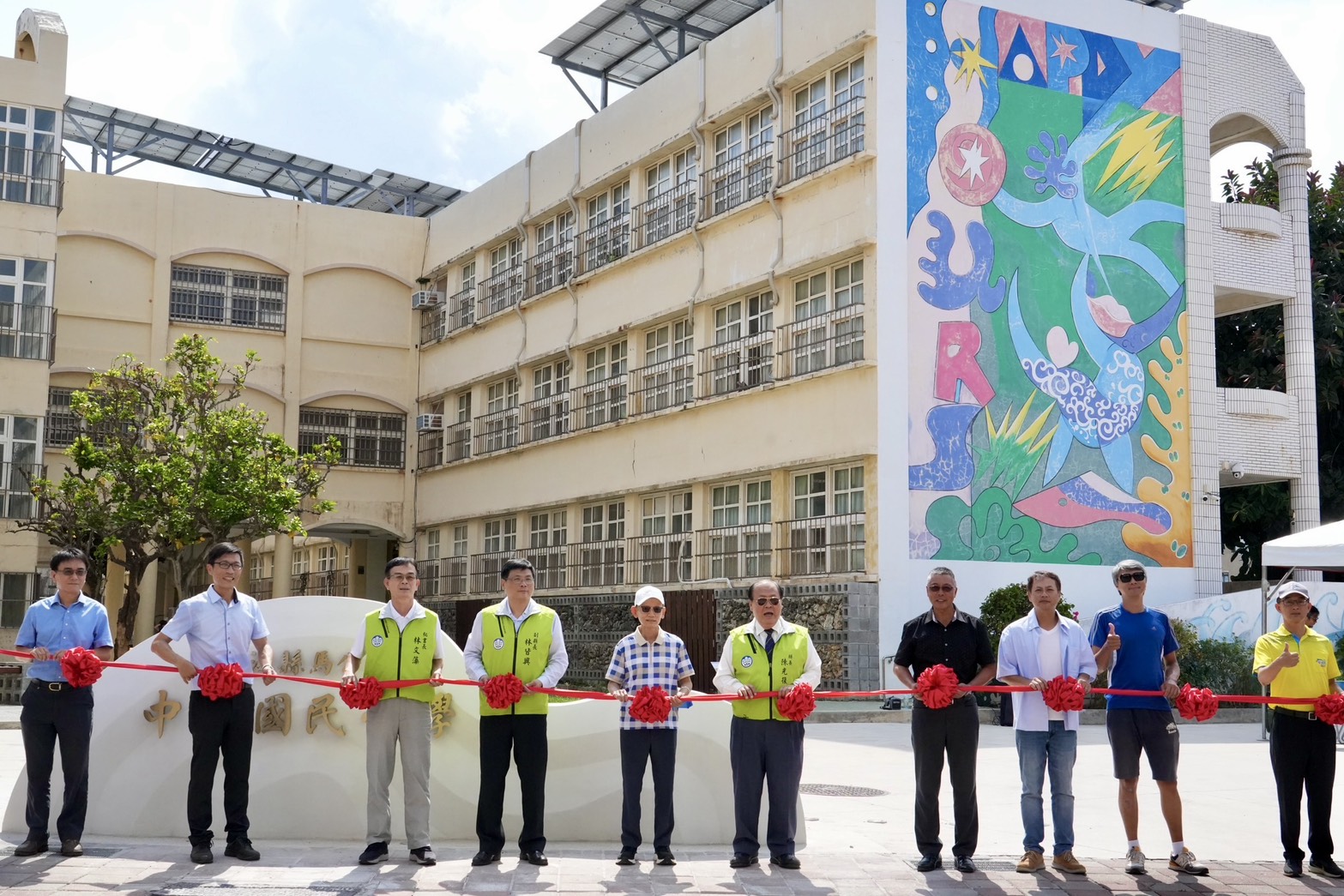 澎湖縣中興國小今(30)日舉行「行走浪花的美好」公共藝術啟用典禮,澎湖縣長陳光復出席活動,宣告澎湖校園藝術教育邁入新里程碑。陳光復指出,公共藝術作品融合空間、文化、環境與社區等多元元素,不僅美化校園,更將藝術精神融入教育理念,期盼未來澎湖能有更多具藝術美感的公共場域。