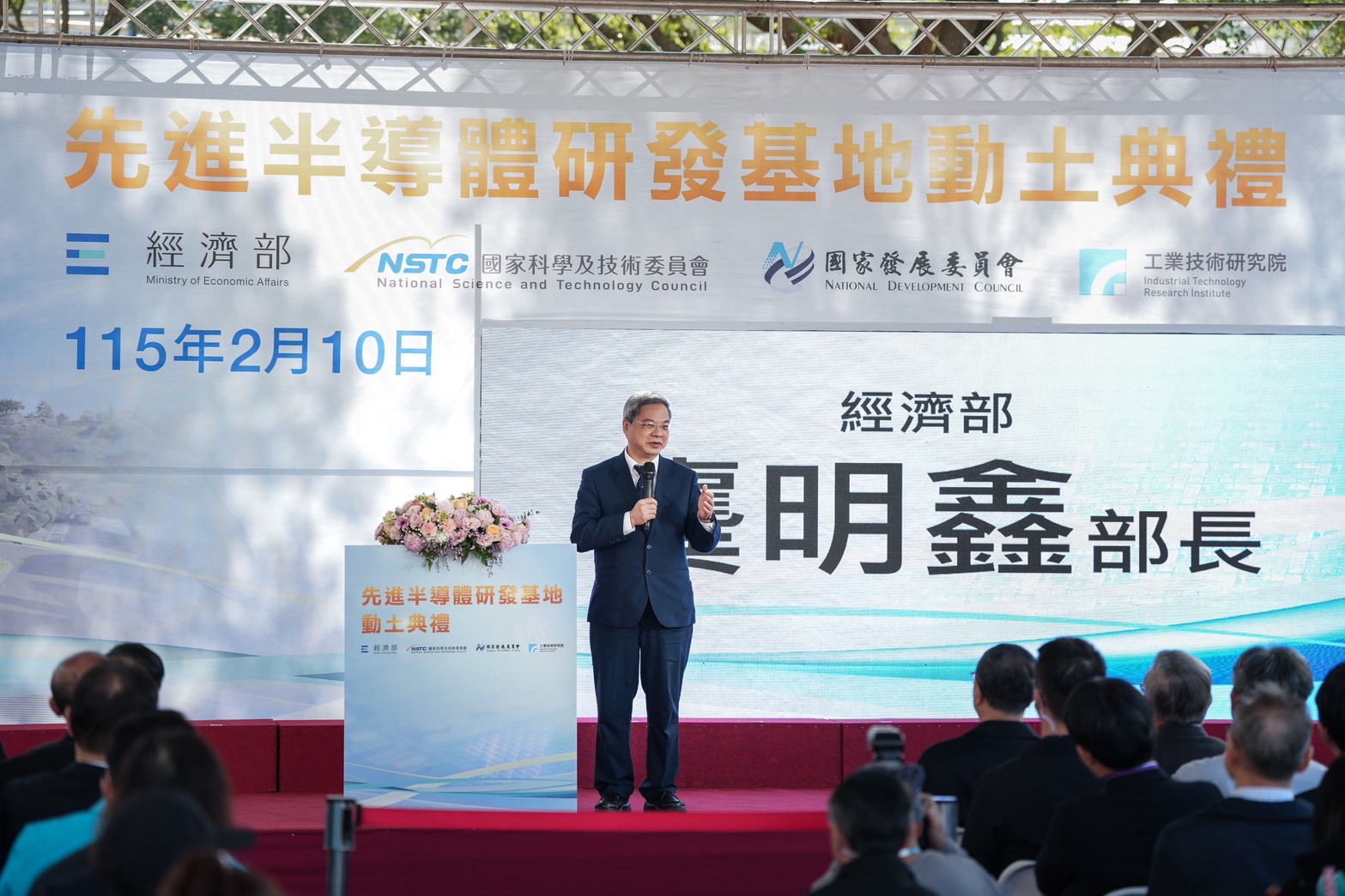 出席動土典禮的包括行政院吳誠文政委兼國科會主委、經濟部龔明鑫部長、國發會詹方冠副主委、經濟部產業技術司郭肇中司長、新竹縣楊文科縣長、工研院吳政忠董事長、台灣半導體協會盧超群常務理事、聯發科技洪志銘協理及台積電張孟凡處長等人。