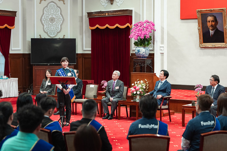 賴總統致詞時首先向所有得獎者表達祝賀,指出能夠獲得「全國商店傑出店長」殊榮,代表在第一線服務與管理表現上具有卓越成就。他同時感謝台灣連鎖暨加盟協會多年來透過表揚與交流活動,持續鼓勵業界重視人才培養,為服務業建立專業典範。