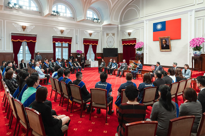 總統賴清德9日上午於總統府接見「第28屆全國商店傑出店長」代表,肯定獲獎店長展現服務業追求卓越的典範,並感謝台灣連鎖暨加盟協會長期推動產業人才培育。賴總統表示,面對服務業缺工與數位轉型挑戰,政府正透過調升基本工資、推動職業訓練與導入「服務業AI升級方案」,協助產業提升經營效率與競爭力,期盼與業界攜手推動產業升級,讓民眾獲得更優質的服務。