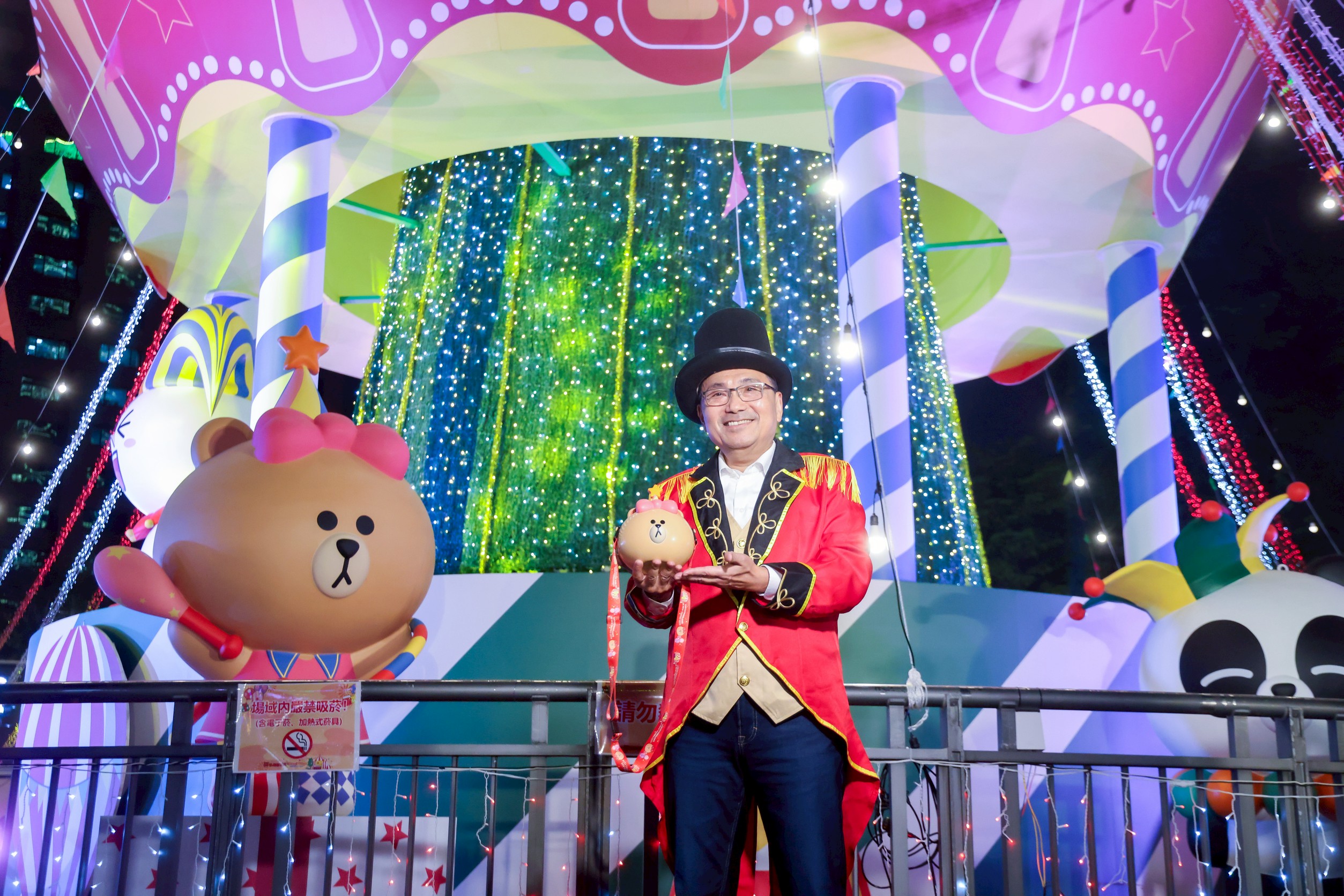 「2025 新北歡樂耶誕城」今(14)日在板橋盛大開城,今年首度結合「馬戲嘉年華」主題,以大型開城秀揭開序幕。新北市長侯友宜化身馬戲團團長,並與啦啦隊人氣成員李雅英及 LINE FRIENDS 角色「兔兔」共同登台點燈,為全臺最具代表性的冬季慶典正式啟動。點燈後,為期 45 天的系列活動同步展開,吸引大批民眾湧入市民廣場搶先感受節慶氛圍。