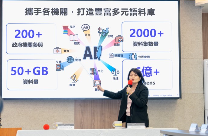 數位發展部指出,目前已有超過200個政府機關參與語料建置與釋出,上架逾2,000筆資料集、總量超過6億tokens,內容涵蓋語言、文化、教育、生物、地理環境等多元領域,並納入具臺灣文化特色的高品質資料,作為AI模型理解臺灣社會的重要訓練素材。