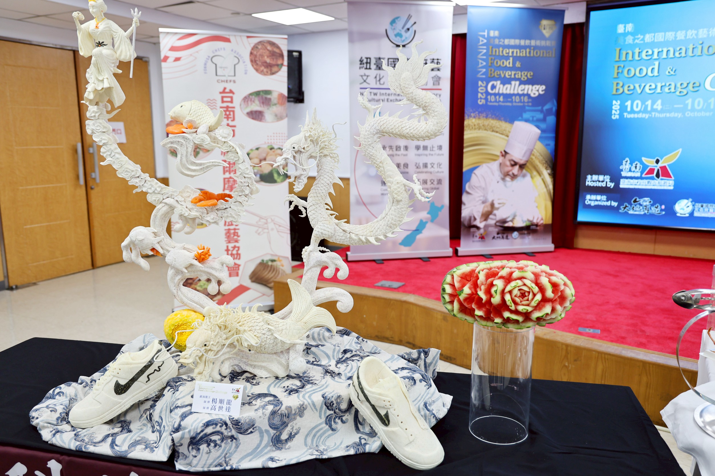 觀旅局長林國華指出,去年賽事受到熱烈迴響,今年則升級推出TIFBC挑戰賽,比賽類別更豐富,評審陣容也更具國際視野。此次賽事涵蓋烘焙藝術、創意飲品、靜態冷展、餐酒料理等多元項目,並首次將果雕、和果子、糖霜餅乾與果醬畫盤列入靜態藝術展示,藉由今天的記者會也搶先亮相。