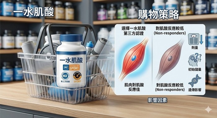 如果決定補充肌酸,最重要的原則其實很簡單:選擇單純的Creatine Monohydrate。目前多數運動營養研究都指出,與其追求複雜配方,不如選擇成分單純且純度高的產品。國際健身圈常見的品牌包括Optimum Nutrition、Thorne、NOW Sports、Bulk Supplements與MyProtein等。部分產品會標示Creapure原料,這是一種德國製造的高純度肌酸原料,在運動營養領域具有良好品質口碑。此外,也可留意產品是否具有第三方品質認證,例如NSF Certified for Sport或Informed Sport。