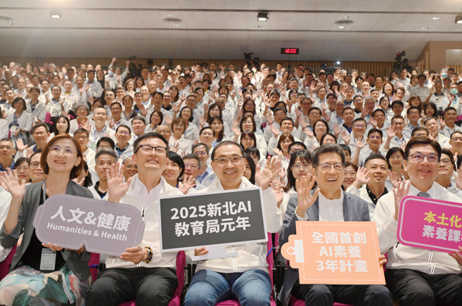 校長會議焦點同時放在未來AI教育發展。侯友宜宣布,將以在地MIT(Made in Taiwan)到國際MIT(麻省理工)跨國合作,啟動全國首創「AI素養教育三年計畫」,導入麻省理工學院MIT RAISE與跨國教育組織 i2Learning 共同開發的全球 Day of AI 課程。侯友宜指出,AI浪潮已深刻改變產業與生活,教育必須率先迎向挑戰,讓學生在認識、理解與應用AI的基礎上成長。