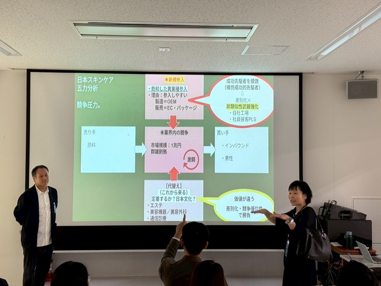 鄭祥麟教授表示,此次移地教學的重點,在於讓學生透過實際企業案例,理解理論如何應用於不同市場情境。特別是在顧客關係管理、品牌經營與商業模式創新等議題上,再春館製薬所提供了具代表性的觀察樣本。透過與企業高階主管的直接交流,學生不僅能掌握策略方向,更能理解企業在面對市場變化時的決策邏輯。