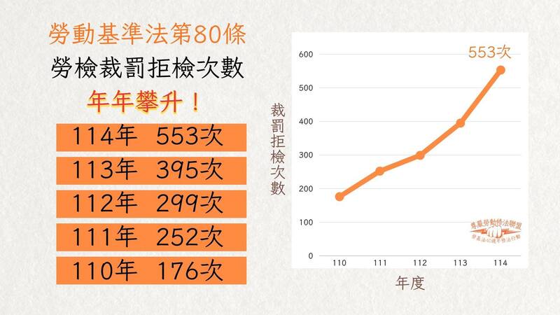 面對這一波勞檢違法雇主資料,勞團提出三大訴求:第一,修訂《勞基法》第79條,提高裁罰上限至300萬元,並修正「違反勞動基準法裁處罰鍰共通性原則」,使雇主規模、違法次數成為加重懲處依據;並增訂條款限制違法雇主負責人出境及強制參加勞動法令講習。第二,修正《勞基法》第80條,提高拒絕勞動檢查的罰鍰,以避免雇主心存僥倖。第三,優化勞動部裁罰資料系統,規範數據記錄與上傳時程,讓違法雇主資訊透明可查,達到社會監督效果。