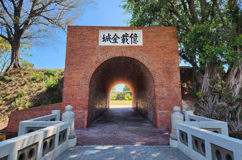憶載金城,俗稱二鯤鯓砲臺或安平大砲臺,位於臺南市安平區。是清朝末年為強化臺灣海防所興建的一座西式砲臺,由清廷欽差沈葆楨建於1874 年,是清朝末年為強化臺灣海防所興建的一座西式砲臺。自1874年動工起,到1876 竣工,億載金城以其「稜堡式」紅磚構造、護城河與砲位設計成為當時臺灣首座具現代軍事防務構造的砲臺。砲臺建成後曾配置有多門英製阿姆斯壯大砲、小砲與後膛砲等武器,並利用護城河與水道做為防禦設施。但隨著武器技術更迭與戰略環境改變,其軍事功能逐漸式微。日本統治時期,億載金城經歷毀壞與閒置,設施近荒廢。
