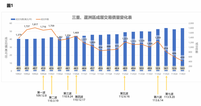 自2020年起,央行陸續啟動七波不動產信用管制措施,試圖遏止資金過度流向房市。根據新北市三重地政事務所分析,自第一波管制至2025年第一季,三重與蘆洲地區買賣交易量減少約75%。其中,第四波(2021年Q4)與第六波(2023年Q2)管制後,交易萎縮尤為明顯。