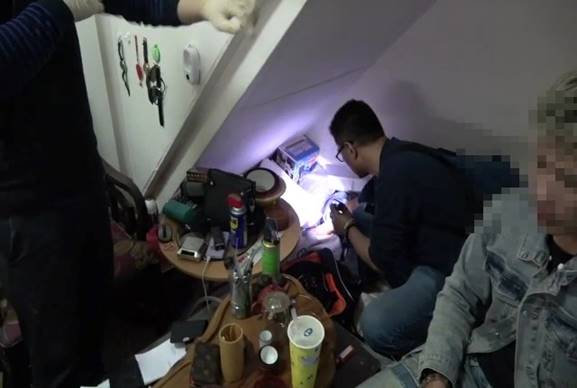 專案小組調查期間發現,莊姓嫌犯雖足不出戶,但住處卻有人頻繁進出,研判其從事不法活動。待時機成熟後,經新北地方法院核發搜索票,專案小組進入嫌犯住處執行搜索。嫌犯見勢不妙,企圖將大量安非他命丟至隔壁民宅屋頂,但專案小組事先佈防,成功攔截並完整蒐證,並查獲子彈等犯罪證物。