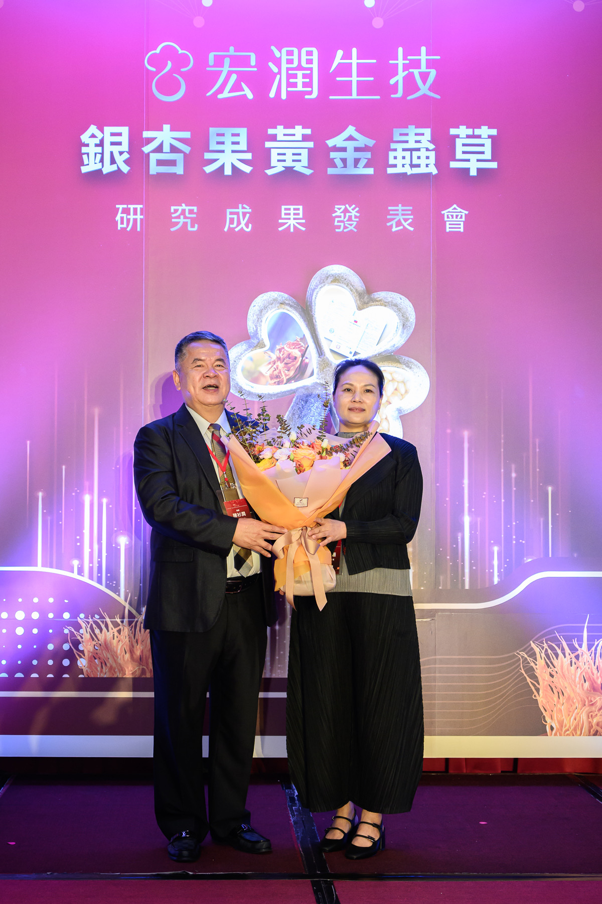 宏潤生技董事長陳衫潤指出,團隊以銀杏果為培養基底,結合自有真菌馴化技術,成功培養出蟲草素含量穩定且具高營養價值的「銀杏果黃金蟲草」,並於2020年取得中華民國經濟部智慧財產局發明專利。該成分富含蟲草素、蟲草酸、多醣體及SOD等活性營養素,不僅突破傳統蟲草成分不穩定的瓶頸,更展現於保健與輔助治療領域的應用潛力。