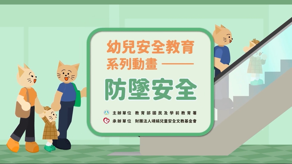 至於防墜安全,則透過動畫情境描繪幼兒在家中、校園或戶外可能遭遇的高低落差環境,示範如何辨識危險、注意間隙與高度差,並採取正確姿勢避免跌落,幫助幼兒理解生活中潛藏的風險並主動防範。