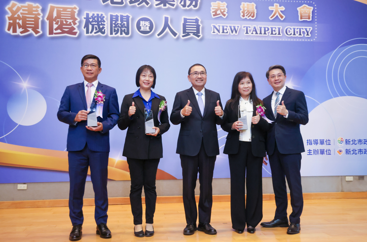 新北市政府今(11)日舉行「114年度地政業務績優機關暨人員表揚大會」,表揚年度在地政推動、專業服務與公共參與上表現卓越的地政士、不動產經紀人員、地政志工與各地政事務所團隊。市長侯友宜親自頒獎,並首度增列「績優防詐人員」獎項,肯定同仁在不動產防詐前線的敏銳判斷與積極作為,期勉市府團隊持續精進專業,以行動守護市民財產安全。