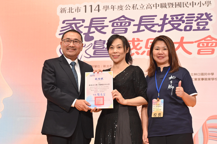 新北市政府今(9)日舉辦「114學年度公私立高中職暨國民中小學家長會長授證暨感恩大會」,頒發230位卸任會長感謝狀,以及231位新任及108位連任會長當選證書,以表彰家長會長對學生及校園的貢獻。典禮上,同時發表全國首創的「幸福親子守候讚」AI親職共育機器人,協助家長掌握教養、情緒溝通及學校參與等資訊。