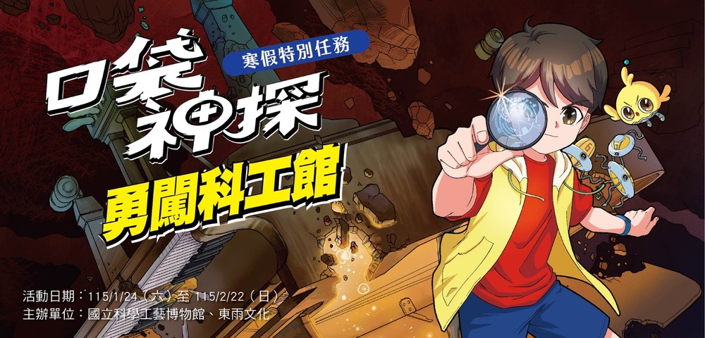 科工館推出「口袋神探 勇闖科工館」寒假特別任務,在北館1樓大廳設置「口袋神探任務總部」,完成任務者可憑學習單兌換限量紀念品,包括「口袋神探特別任務閃卡」及進階任務專屬紀念胸章。此外,館方配合春節氣氛設計紅包袋等驚喜贈品,吸引親子家庭參與。