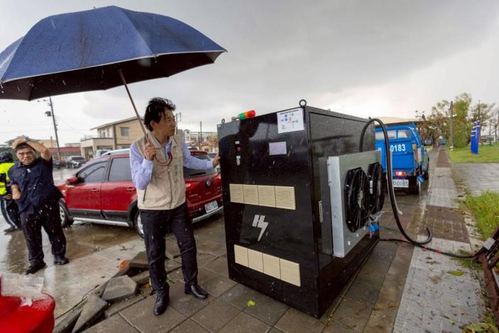 臺南因丹娜絲颱風襲擊,沿海地區出現大規模停電,台灣電力公司仍持續搶修復電。為解決居民生活用電需求,臺南市政府攜手本地新創企業威杰能源與氫豐綠能,布置兩座共110瓩(kW)氫能發電機,並成功與社區電網連結,優先恢復公共設施供電。