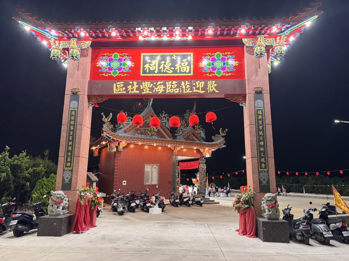 澎湖縣長陳光復今(7)日特別搭船前往七美,除關心地方建設進度,也藉著中秋佳節向鄉親問候致意。適逢七美三塊厝福德祠舉辦土地公祝壽與拜天公補運儀式,陳光復晚間更與議員張仁和、七美鄉長呂啓俊及地方代表一同參加平安宴,與鄉親共度溫馨佳節。