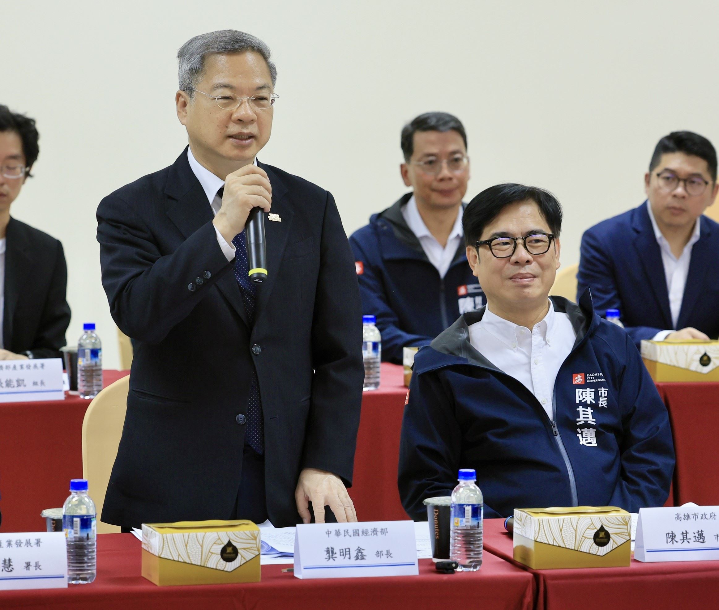 高雄市長陳其邁感謝龔部長上任後即刻南下,強調在232條款重稅與歐盟碳稅衝擊下,高雄扣件業必須「轉骨」升級。陳其邁指出,高雄業者在技術、客製化與品質上具優勢,市府正推動高值化、數位化及低碳轉型,並與螺絲公會合作,積極開拓國際多元市場。他表示,「危機就是轉機,高雄扣件業有能力化挑戰為契機,進軍高端市場。」