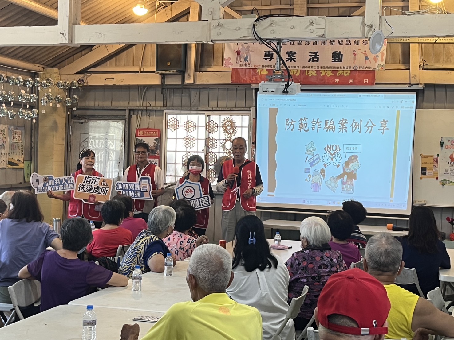 為提升社區防詐意識,臺中市龍井、大肚地區的防詐宣講團近期持續深入鄰里舉辦宣導活動,透過生活化案例與互動方式,協助民眾掌握最新詐騙手法。地政局表示,未來將邀請在地志工加入宣講行列,借重志工平時與居民的密切互動,以更親近的方式將防詐觀念傳遞到家家戶戶,擴大宣導效益。