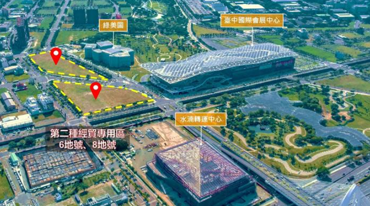 根據經發局說明,經貿段6、8地號總面積約3.86公頃,屬水湳經貿園區第二種經貿專用區,具建蔽率80%、容積率500%的高強度開發條件。市府採設定地上權70年方式招商,開放興建旅館、複合式商場與商辦空間,並已透過都市計畫通盤檢討,增加多元使用彈性以提升開發誘因。