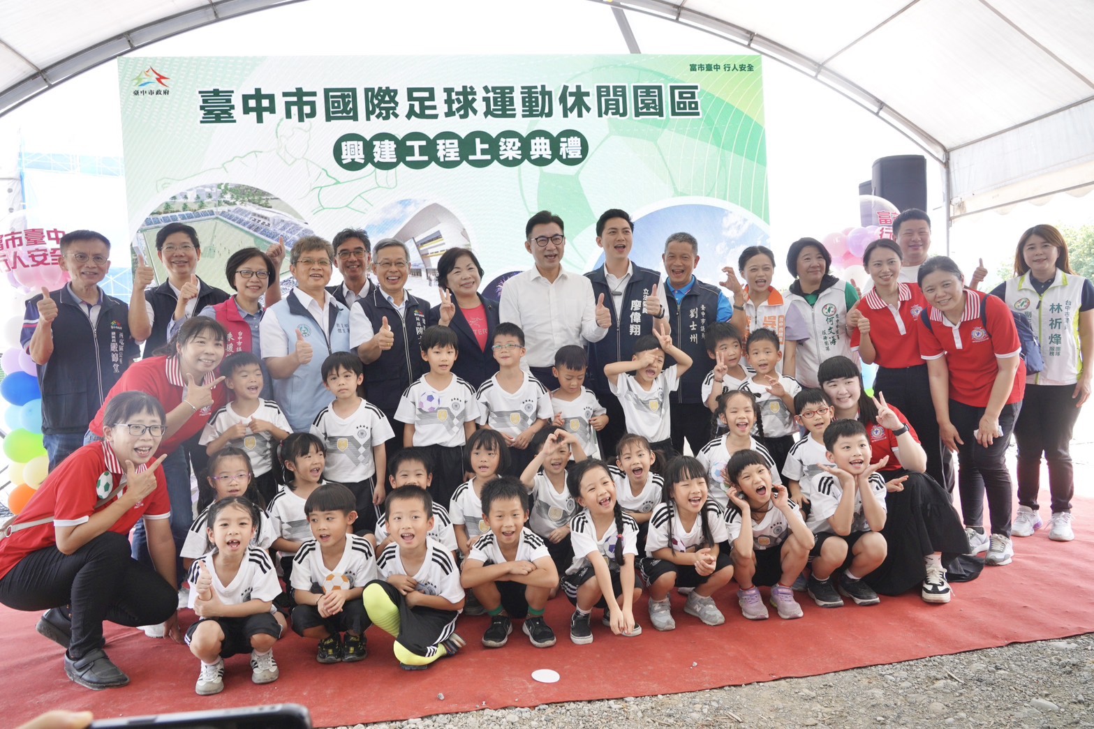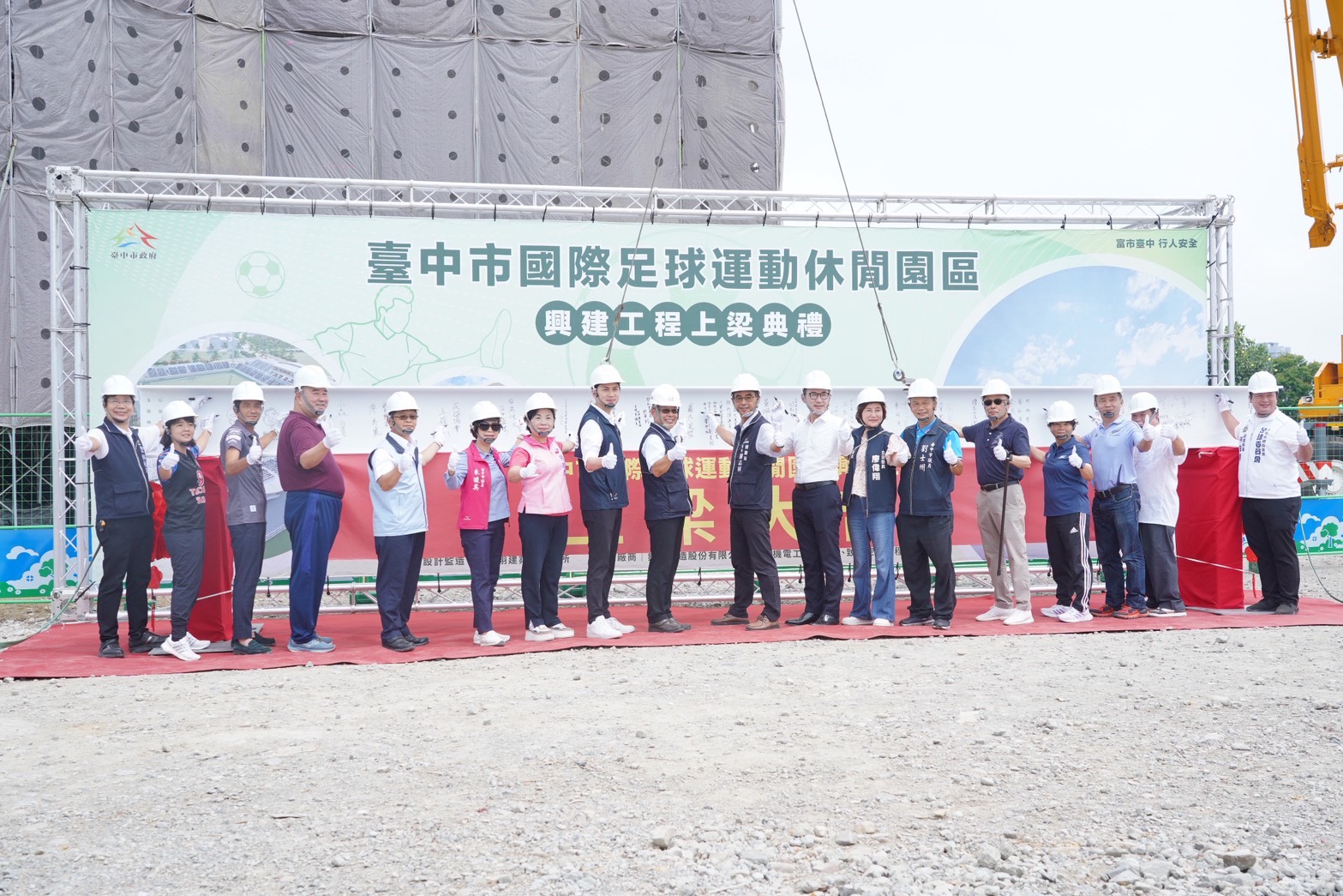 臺中市政府推動的全臺首座獲亞洲足球聯盟(AFC)認證的「臺中市國際足球運動休閒園區」,今(2)日舉行上梁典禮,象徵工程進入新階段。此園區由建設局與運動局聯手推動,總經費近15.2億元,預計115年中完工,未來將成為臺中足球運動發展及承辦國際賽事的重要基地。