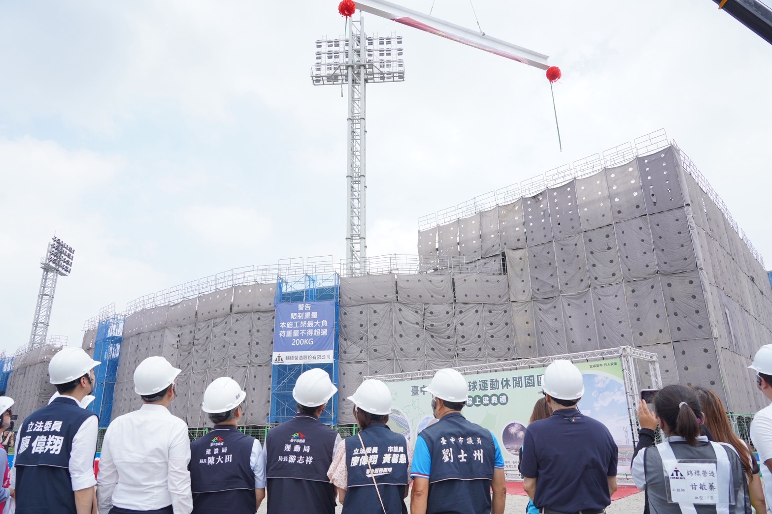 上梁典禮現場包括多位立法委員、市議員、體育署官員、市府團隊及在地民意代表皆到場共襄盛舉,展現市府與各界對臺中足球運動發展的高度重視與支持。
