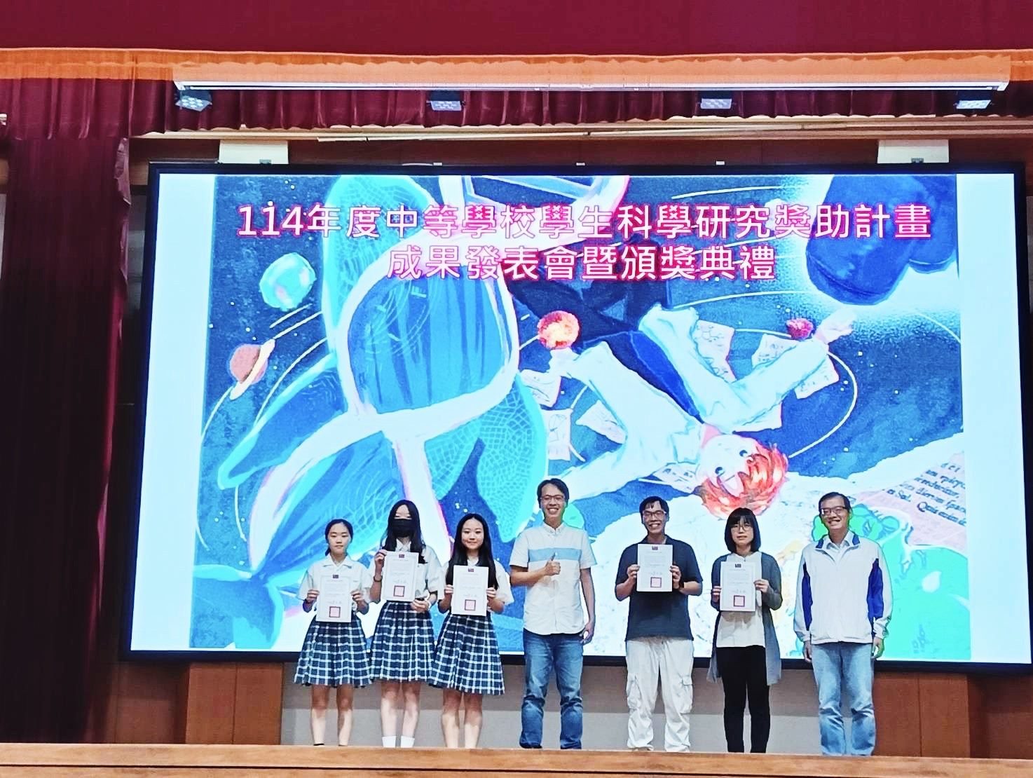 臺北市政府教育局今(26)日於臺北市立大直高中舉行「114年度臺北市中等學校學生科學研究獎助計畫」成果發表暨頒獎典禮。今年全市共有367件研究計畫報名,涵蓋數學、物理、化學、生物、地球科學及應用科學等領域,最終96件作品脫穎而出,題材從AI應用、永續能源到生醫探究,充分展現臺北學子跨域創新與探究能力。