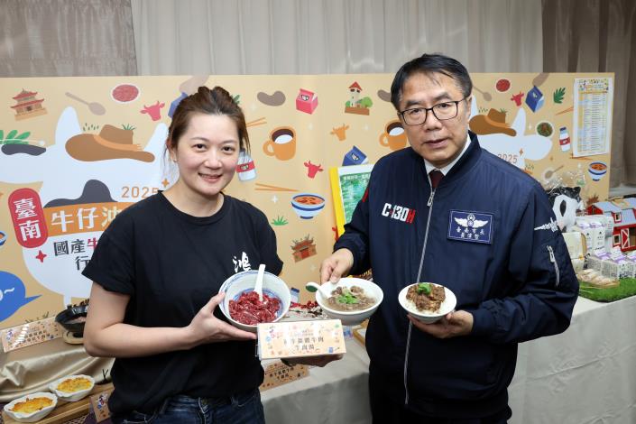 除牛肉外,黃偉哲指出,臺南也是臺灣重要酪農產區,生乳品質優異,此次活動同步推出鮮乳、羊乳及多元畜禽商品,提供民眾一次購足的機會。