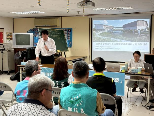 安南區全民運動館基地位於安南區國安段1720地號,總樓地板面積約3,324.57平方公尺,設施包含體適能中心、籃球全場1面、羽球場4面、多功能及韻律教室、商業空間等。新營區全民運動館位於民治段373至376地號,樓地板面積約4,271.86平方公尺,設有體適能中心、綜合球場(籃球1面、羽球4面共用)、另規劃2面羽球場、多功能及韻律教室、商業空間等。
