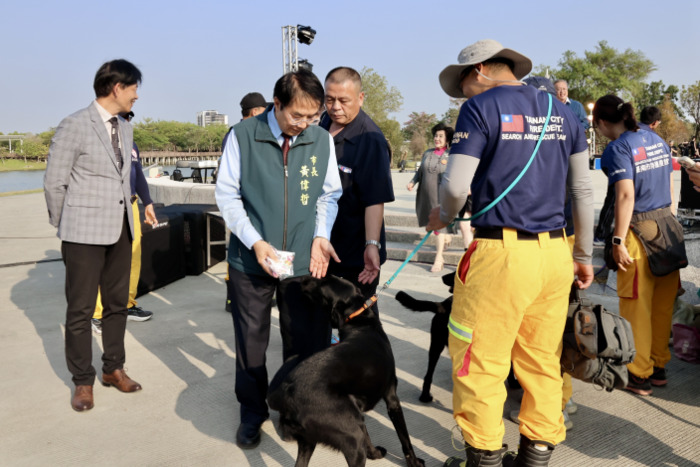 中華強友文教協會今(21)日於臺南舉辦音樂會活動,結合文化藝術與公益精神,台南市長黃偉哲偕同副市長趙卿惠及副市長葉澤山出席開幕儀式,與各界嘉賓共同參與盛會。活動開場安排消防局搜救犬專業演示,展示平時訓練成果與救災能力,現場氣氛熱烈。