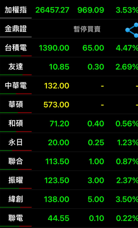 在其他主要權值族群中,電子股全面承受賣壓。鴻海(2317)下跌 11.5 元至 225 元、跌幅 4.86%;聯發科(2454)下跌 40 元收 1,145 元、跌幅 3.38%;台達電(2308)跌幅更達 6.18%,收在 895 元。高價股亦未能倖免,台光電(2383)大跌 120 元至 1,310 元,跌幅高達 8.39%。