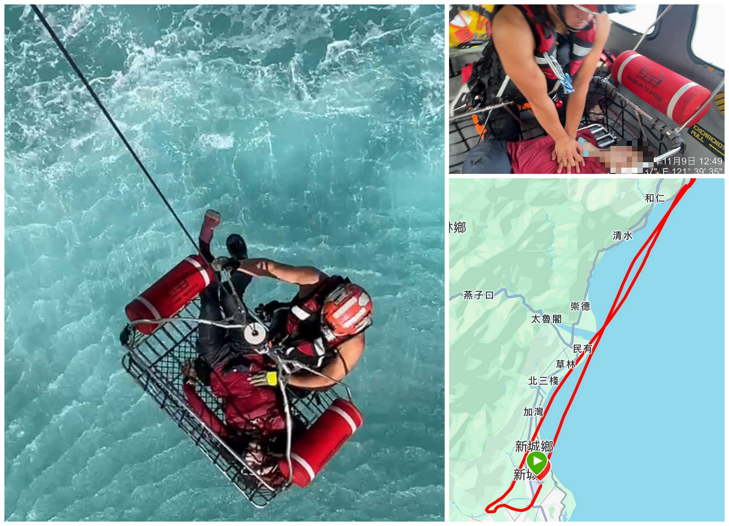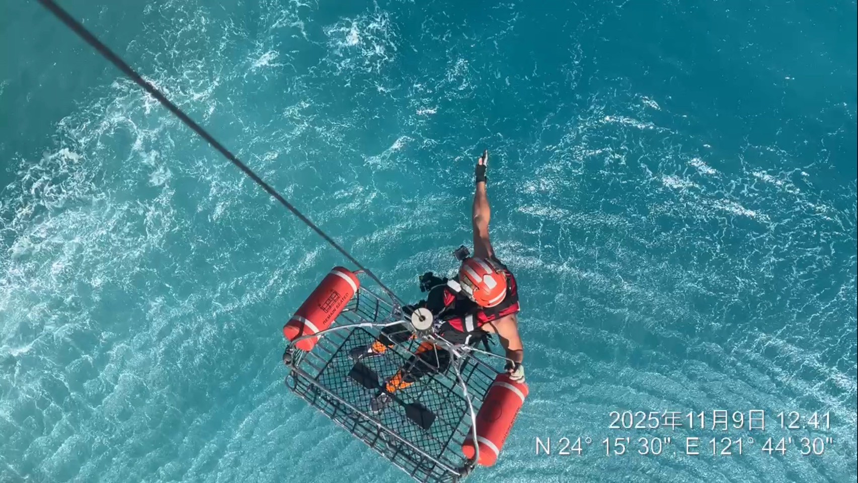 據了解,直升機於中午12時35分抵達目標海域,機組員在低空盤旋中鎖定落海位置,搜救員隨即攜帶吊籃出艙施救,成功將女子吊掛上機。救援任務於12時55分順利落地德興棒球場,並由地面救護人員接手後送醫。