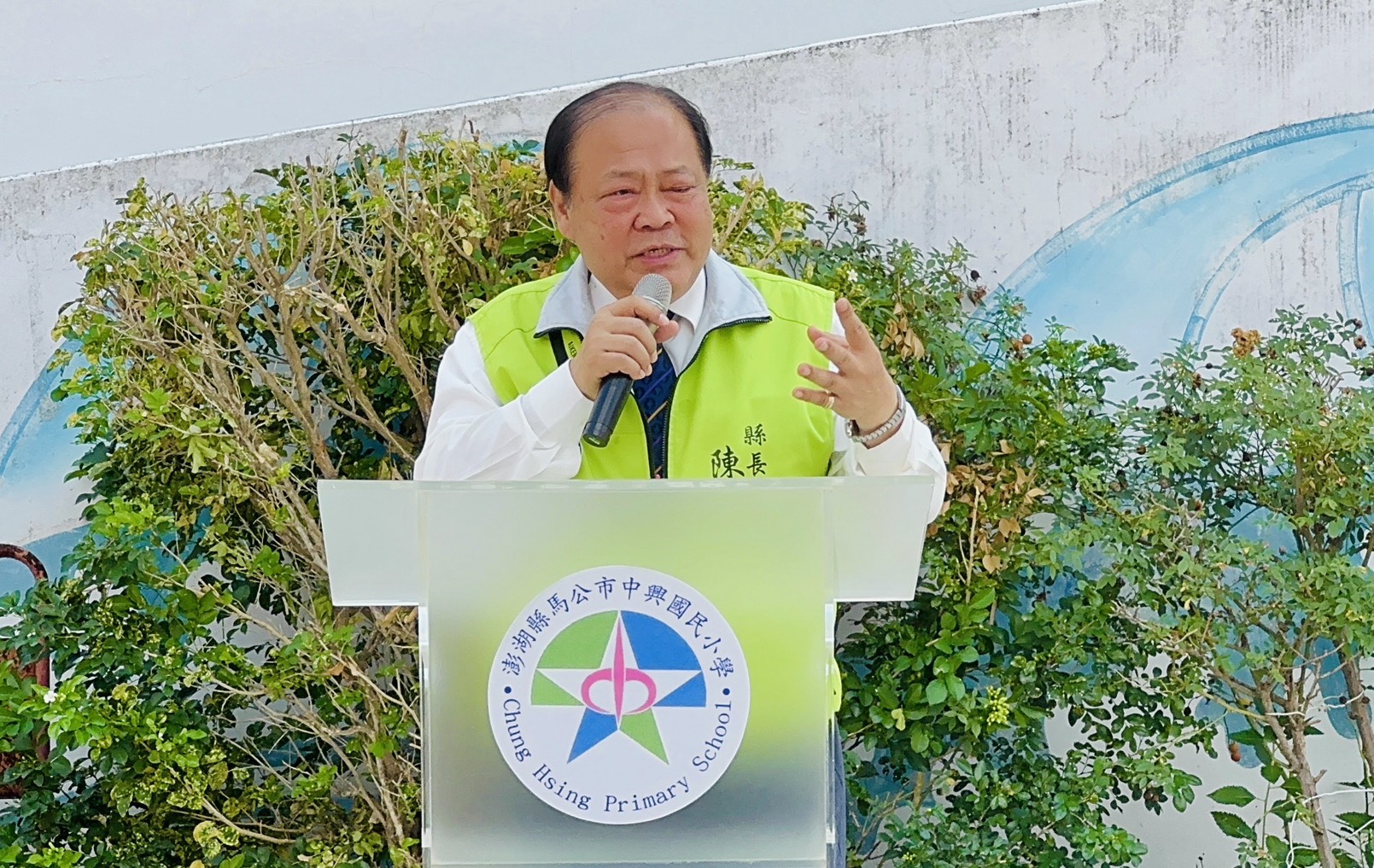 中興國小校長鄭文健表示,公共藝術創作由藝術家陳宏偉先生發想,以澎湖豐富的海洋生態為靈感,並結合師生共同參與陶板創作,打造可休憩、體驗的「潮間帶」公共空間,讓藝術作品成為學校最具特色的門面。