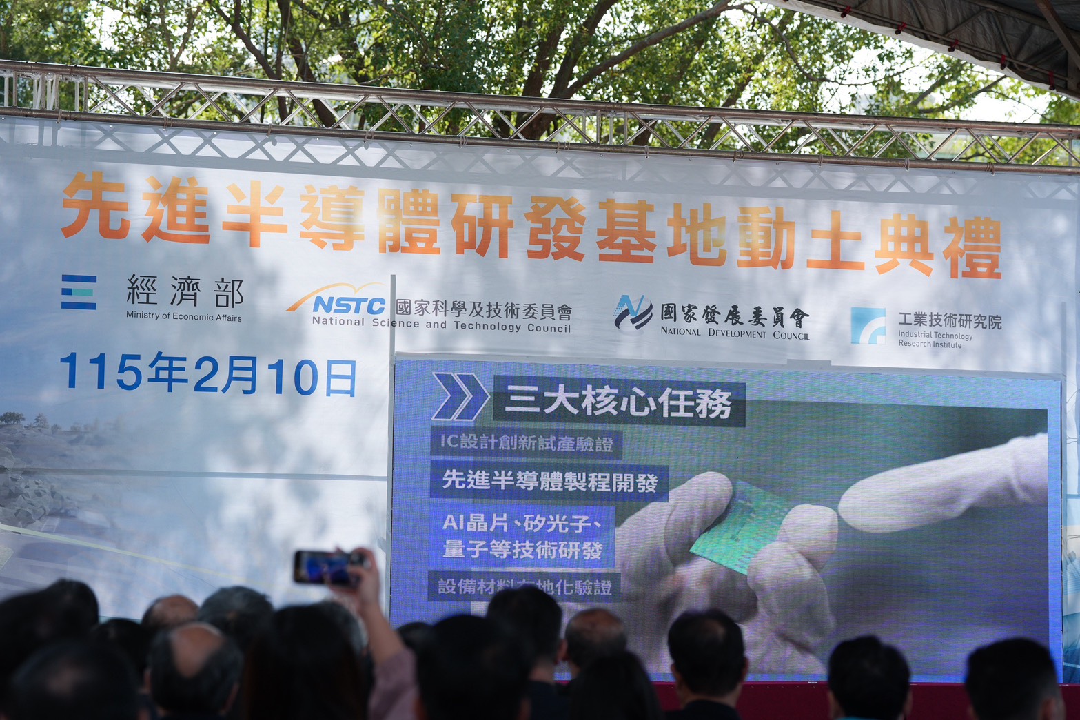 出席動土典禮的包括行政院吳誠文政委兼國科會主委、經濟部龔明鑫部長、國發會詹方冠副主委、經濟部產業技術司郭肇中司長、新竹縣楊文科縣長、工研院吳政忠董事長、台灣半導體協會盧超群常務理事、聯發科技洪志銘協理及台積電張孟凡處長等人。
