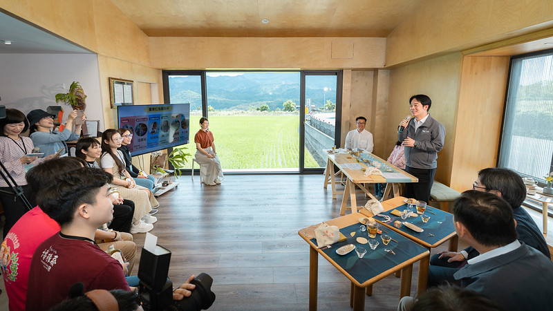 賴總統抵達後,首先參與品茗體驗,並聆聽「女兒不懂茶」創辦人林廷瑀分享地方創生成果。林廷瑀的父親林潮意曾於28歲獲得「神農獎」,後因茶園作為國道三號公路用地被徵收,遷居臺東鹿野深耕製茶工藝40年。賴總統表示,透過林廷瑀的分享,不僅展現茶葉品質與製作工藝,更將茶轉化為生活體驗與文化表現,成功帶動鹿野及臺東茶產業從第一級農業邁向第六級產業。