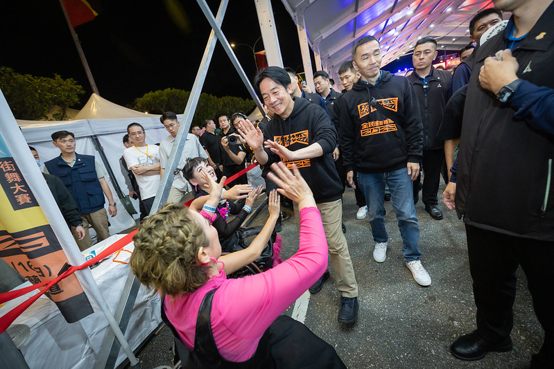 賴總統抵達會場後,首先觀賞公開霹靂舞及排舞冠軍賽。他在致詞時表示,首屆總統盃街舞大賽順利完成各組賽程,來到「臺灣之巔」的舞林高手們都跳得盡興,表現令人驚豔,為凱達格蘭大道增添青春活力與文化氛圍。