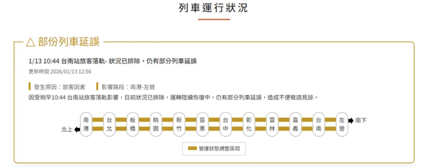 高鐵公司也強調,將持續強化旅客候車安全與站務防護措施,並投入約20.5億元推動全線月台門建置工程,預計於2028年全面完成,以降低旅客落軌及物品掉落軌道等意外風險,提升整體營運安全與效率。